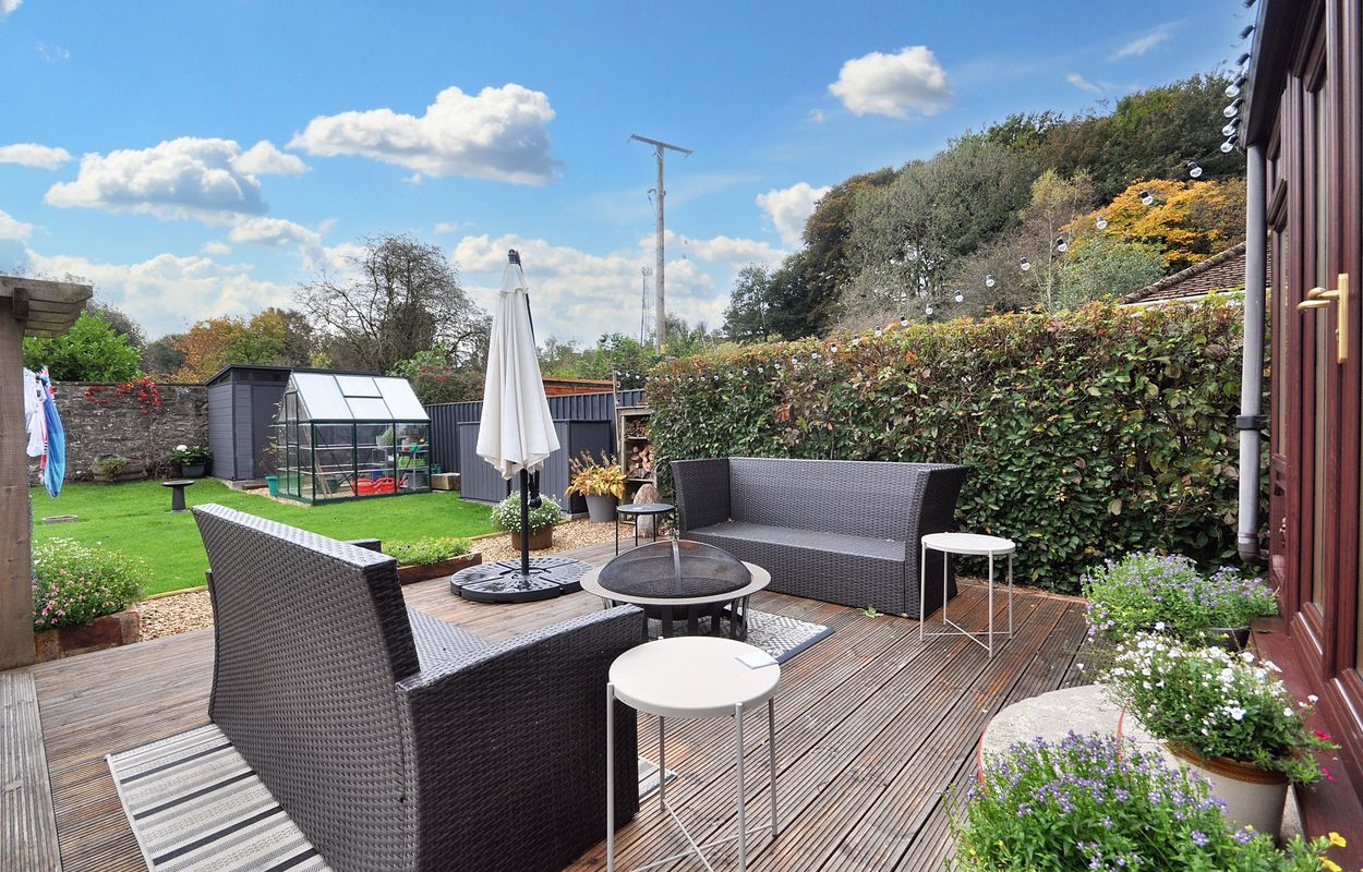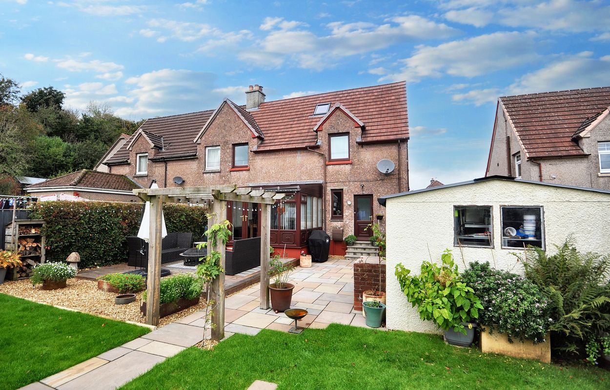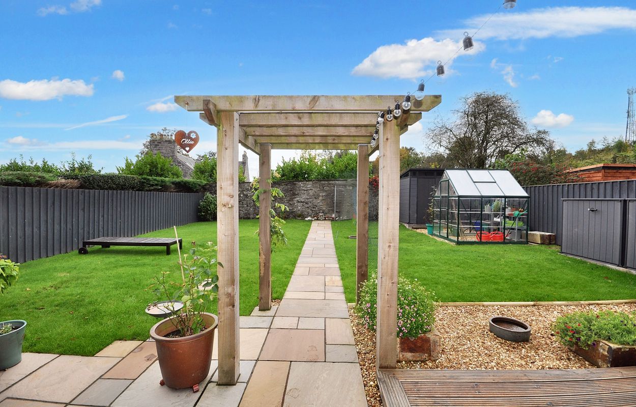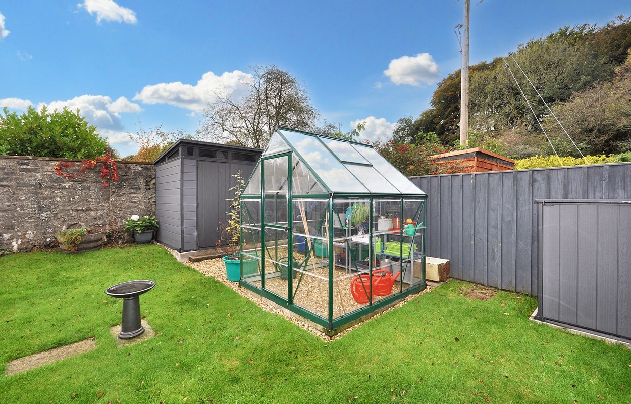 French doors from the conservatory provide seamless access to the outdoors, leading to a tranquil setting featuring a wooden decking patio area, paved patio, and a sprawling lawn meticulously maintained. The gravel border adds a touch of elegance, while timber fencing and a stone dyke wall ensure privacy and security. With the addition of a greenhouse and storage containers, green-fingered enthusiasts will find plenty of space to cultivate their garden. Ample off-road parking is available on the large tarmac driveway to the front, with room for multiple vehicles, complemented by a carport to the side creating a covered entrance to the detached garage, making this property not just a house, but a place to call home with both style and substance.