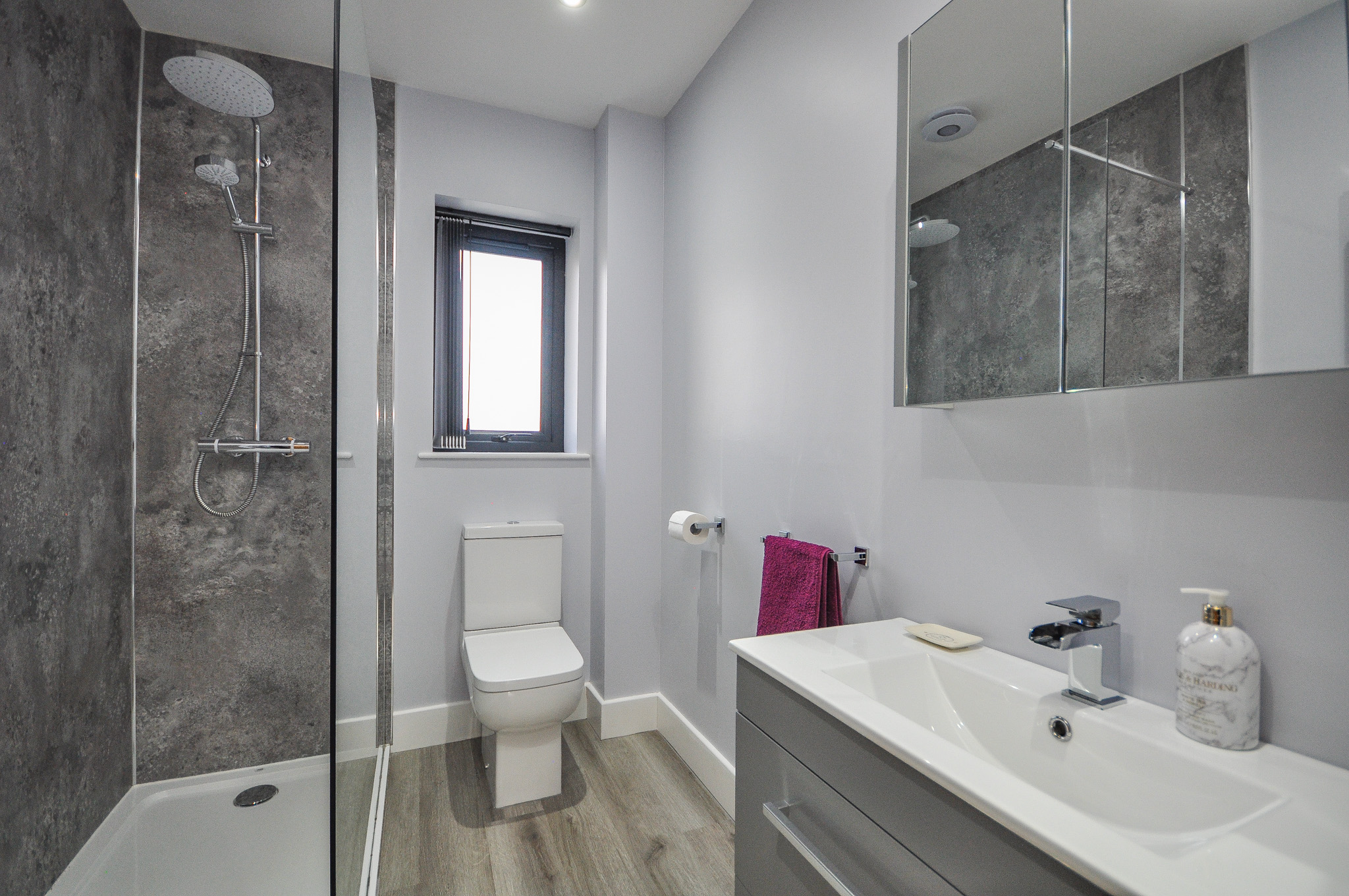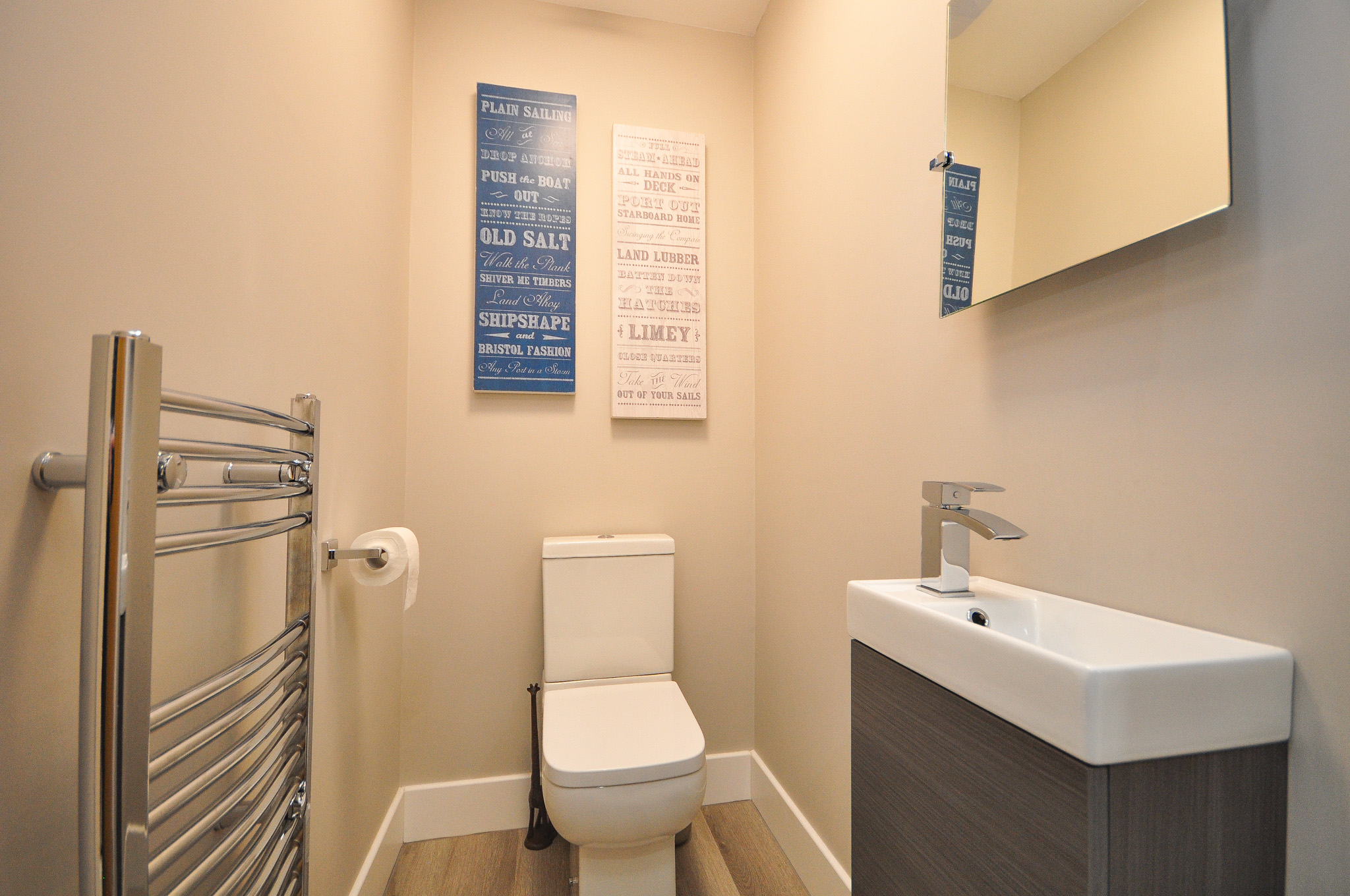 A stylish shower room is fitted with a contemporary suite including walk-in shower with attractive wall panelling, vanity unit wash hand basin and WC, finished to a high standard. A separate cloakroom with modern fittings provides a useful additional facility.
