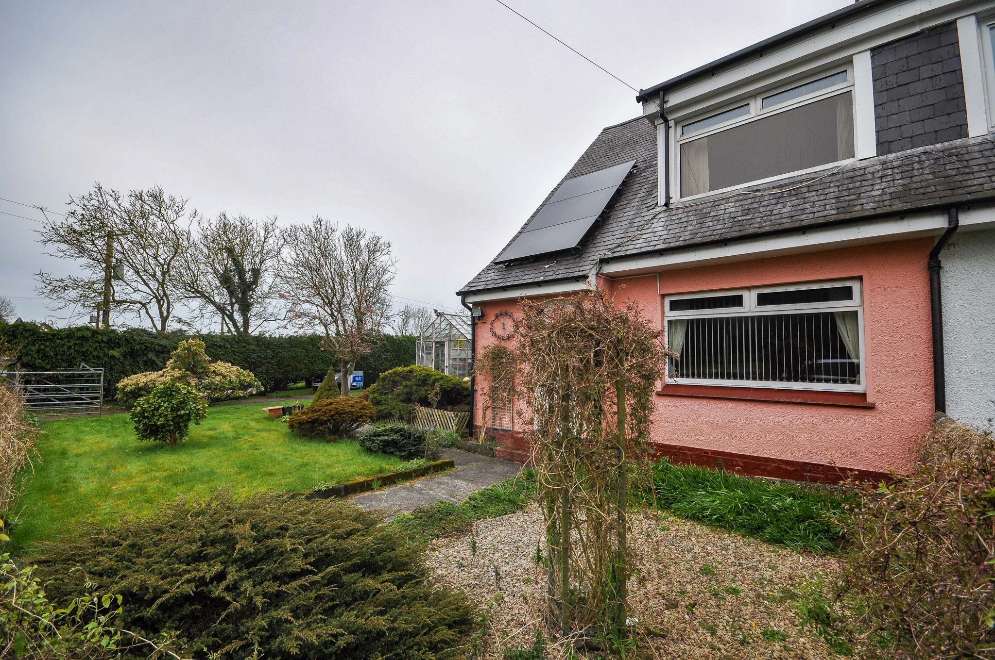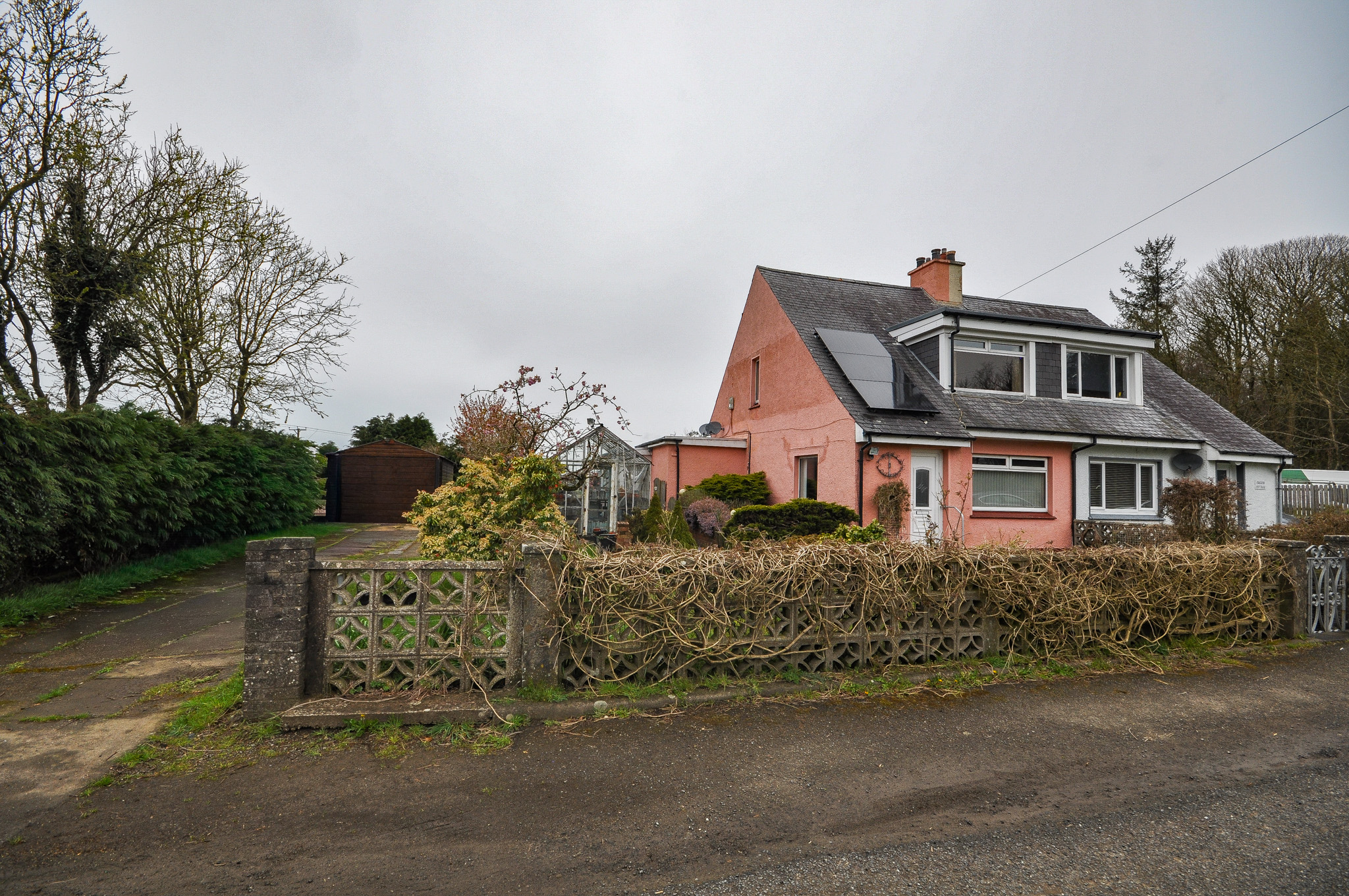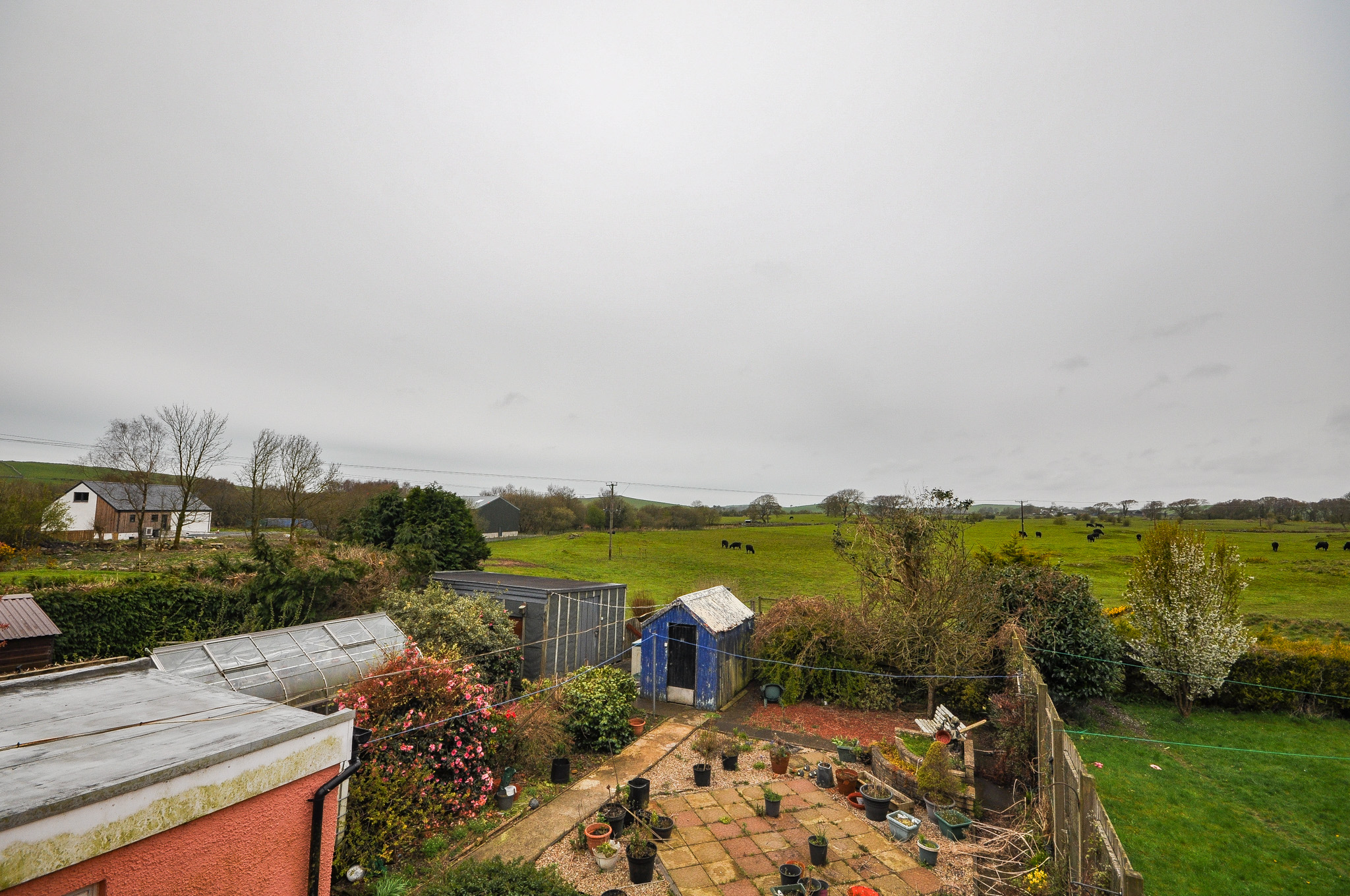 Externally, the property is set within generous garden grounds incorporating areas of lawn, patio and established planting. The gardens feature a variety of mature shrubs and borders, creating a pleasant outdoor environment ideal for relaxing or entertaining. A greenhouse and useful outbuildings provide excellent storage options and will appeal particularly to keen gardeners or those seeking workshop space. The property enjoys attractive open views across surrounding farmland and countryside, enhancing the sense of privacy and space. A driveway provides off-street parking and access to a detached garage, adding further practicality.