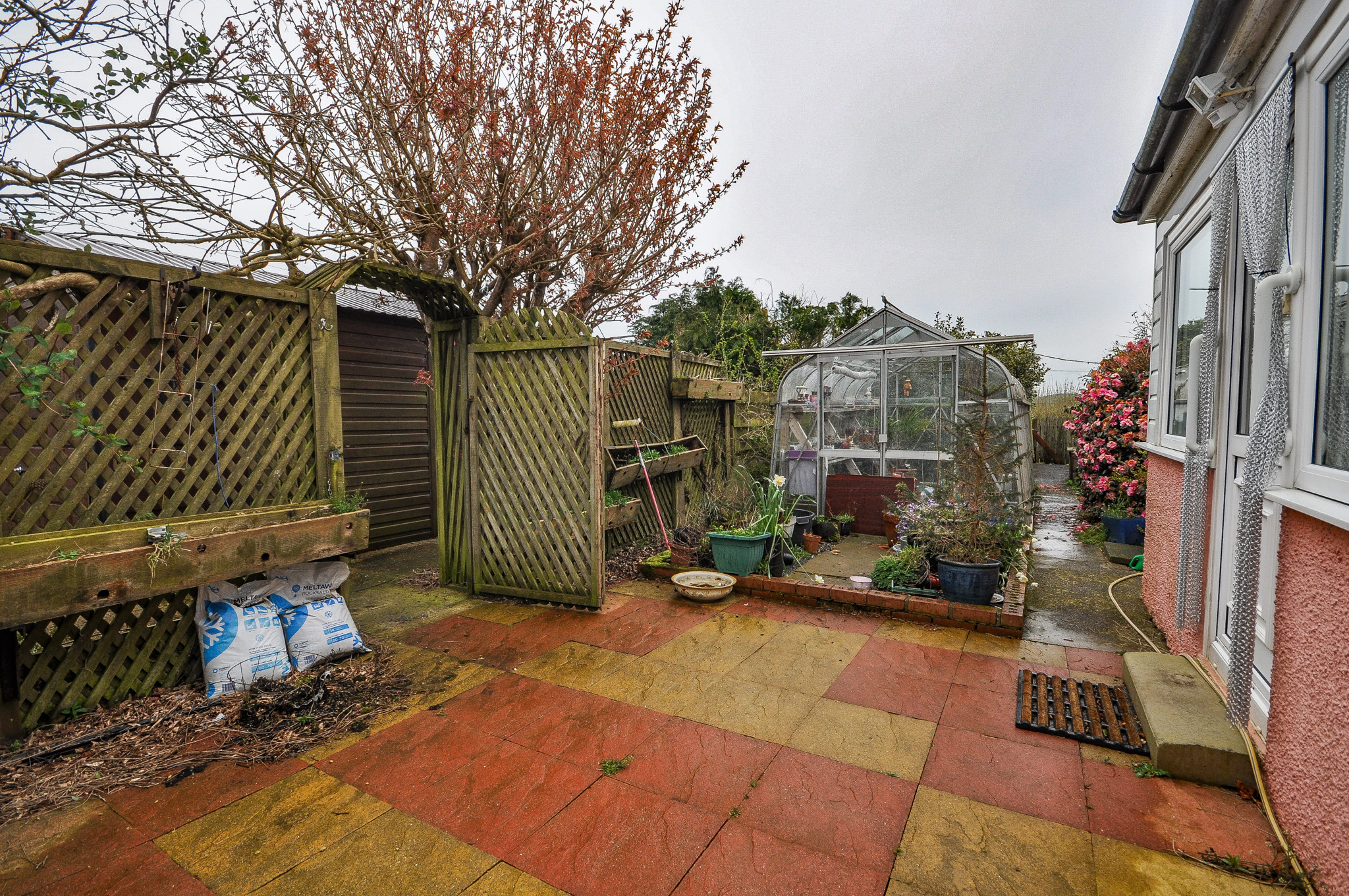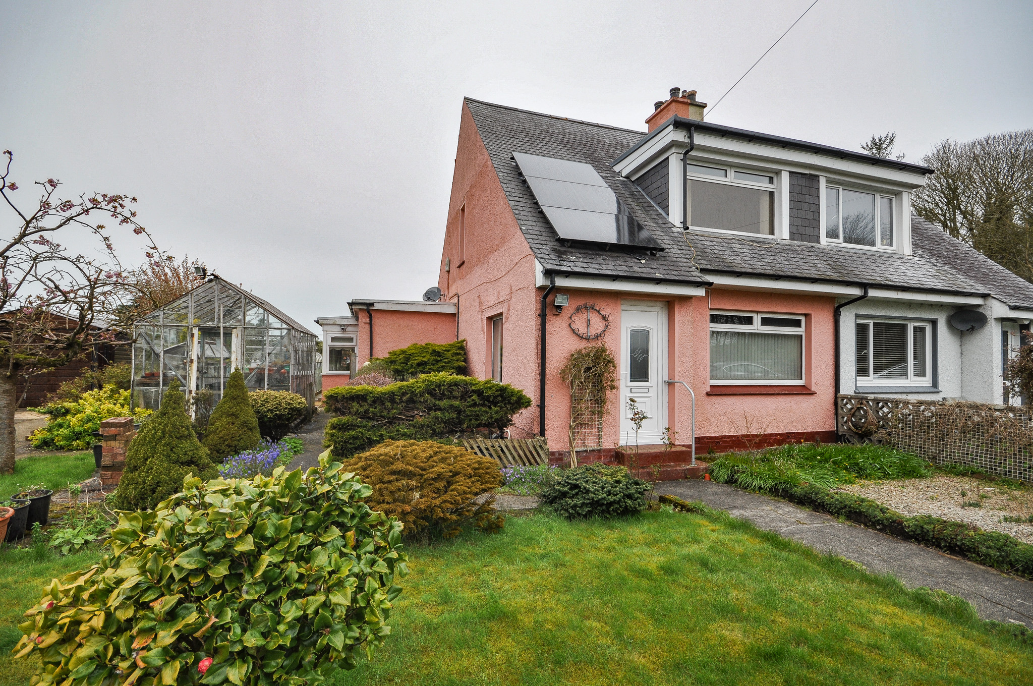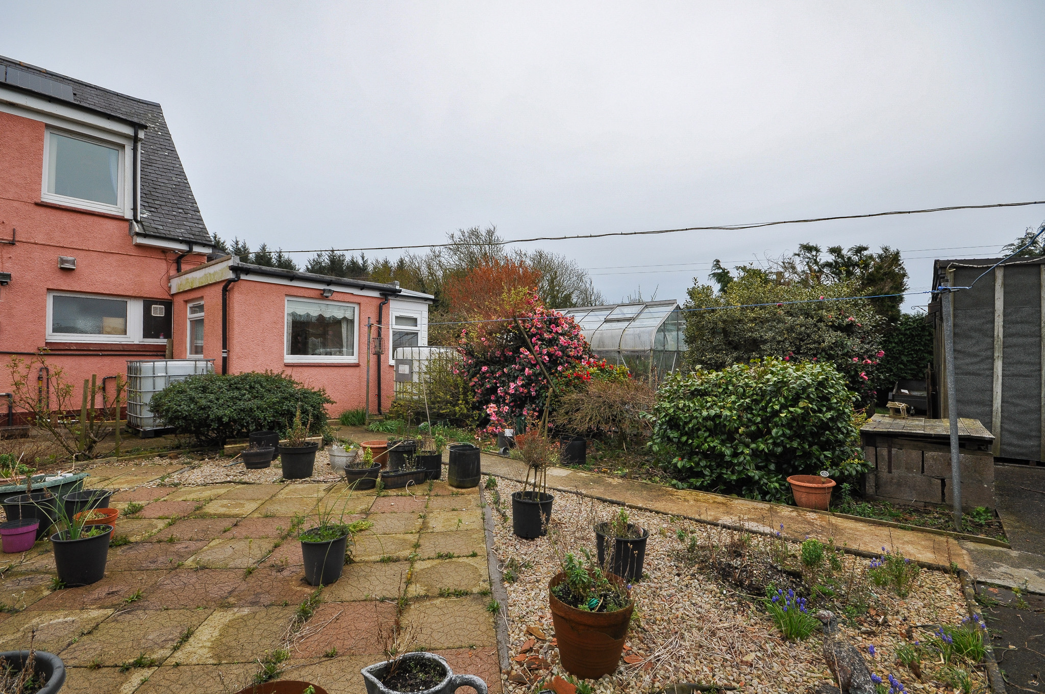 Externally, the property is set within generous garden grounds incorporating areas of lawn, patio and established planting. The gardens feature a variety of mature shrubs and borders, creating a pleasant outdoor environment ideal for relaxing or entertaining. A greenhouse and useful outbuildings provide excellent storage options and will appeal particularly to keen gardeners or those seeking workshop space. The property enjoys attractive open views across surrounding farmland and countryside, enhancing the sense of privacy and space. A driveway provides off-street parking and access to a detached garage, adding further practicality.