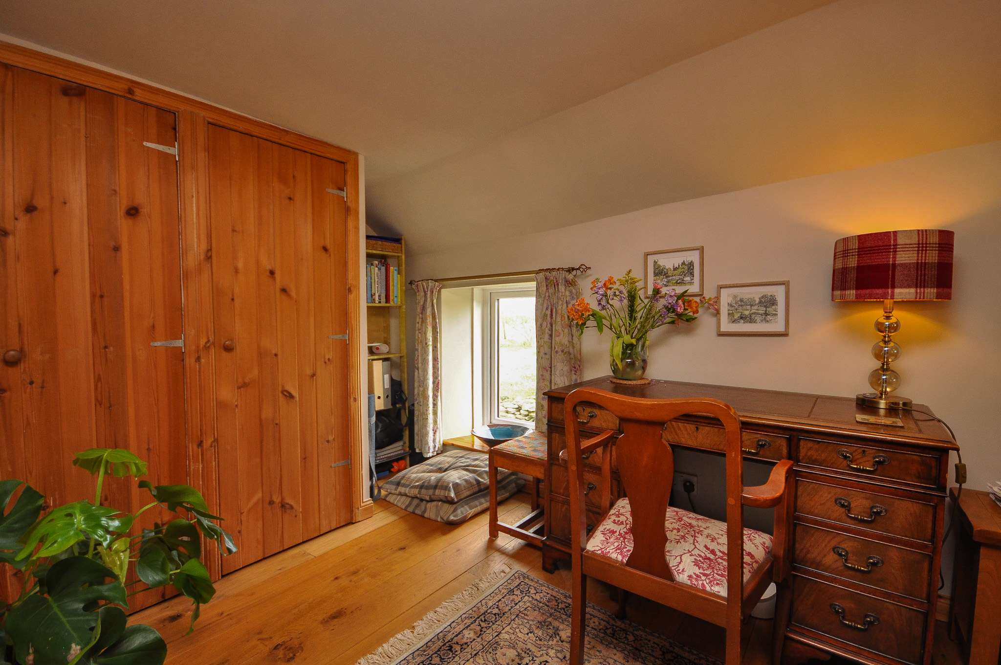 Set within approximately 0.9 of an acre, the property boasts extensive garden grounds with panoramic countryside views. The large, well maintained lawns are complemented by mature plantings, established shrubbery, and raised planting borders, enclosed by traditional stone dyke boundary walls. Outdoor storage is well catered for, with two detached timber garden sheds, a garden store, and easy access to the oil tank. The detached summer house offers flexibility for a variety of uses, from a peaceful retreat to a creative workspace. To the front, a generous gravel driveway provides ample off road parking for multiple vehicles, ensuring convenience for residents and guests alike. This delightful cottage presents a rare opportunity to enjoy a tranquil rural lifestyle, surrounded by scenic countryside, while benefiting from modern amenities and thoughtfully designed outdoor spaces.